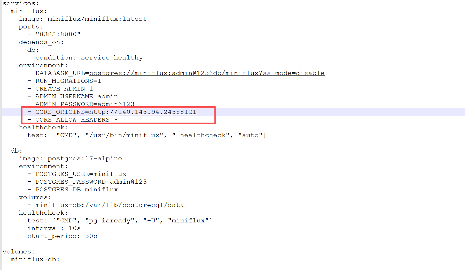 - DATABASE_URL=postgres://miniflux:admin@123@db/miniflux?sslmode=disable